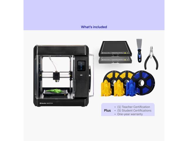 Includes: (1) Sketch Printer (2) Large Spools of PLA (1 Kg) (1) Small Spool of PLA (0.25 Kg) (2) Build Plates (1) Spatula (1) Snip (1) Seat in Teacher Certifications (5) Seats in Student Certifications.