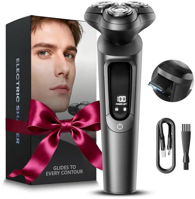 Electric Razor for Men, IPX8 Waterproof with Type-C Quick Charge, 3D Flex Blades & Pop-Up Trimmer, 90 min Runtime, Travel Lock, Wet & Dry Shave,Gray Valentines Day Gifts for Him
