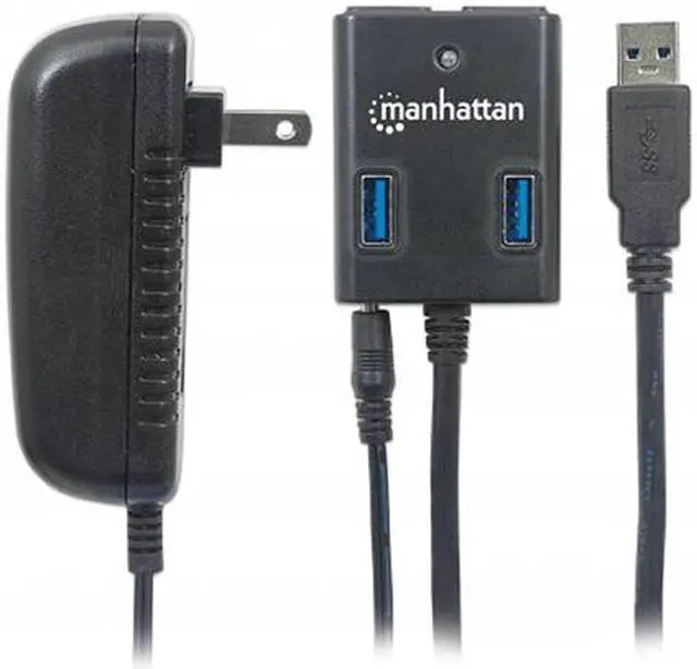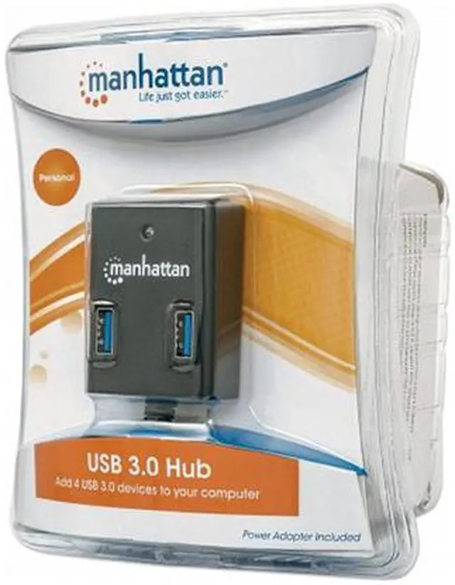 The Manhattan SuperSpeed USB 3.0 Hub easily expands USB access for desktop and mobile use to connect more peripherals and mobile devices. Create more connections for SuperSpeed USB 3.0 devices such as storage devices and Web cameras. It's backward compatible to previous USB standards, providing versatility for attached devices. Plug and play with hot-swap capabilities, Windows and Mac compatibility and data transfer speeds up to 5 Gbps help the Manhattan SuperSpeed USB 3.0 Hub consolidate numerous, less-capable hubs into a single USB solution.