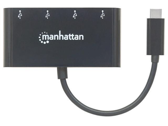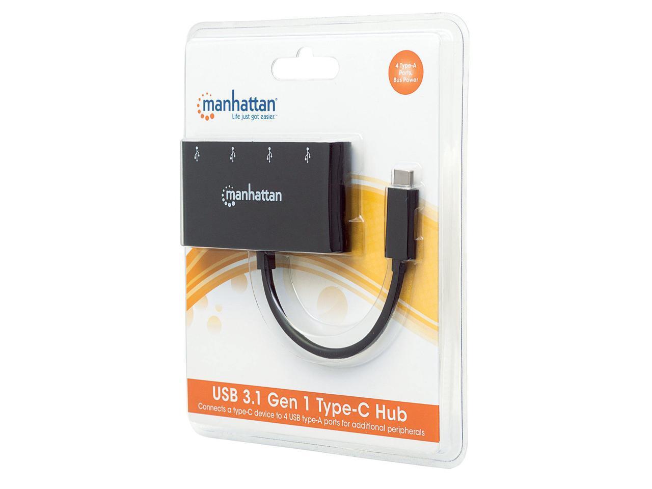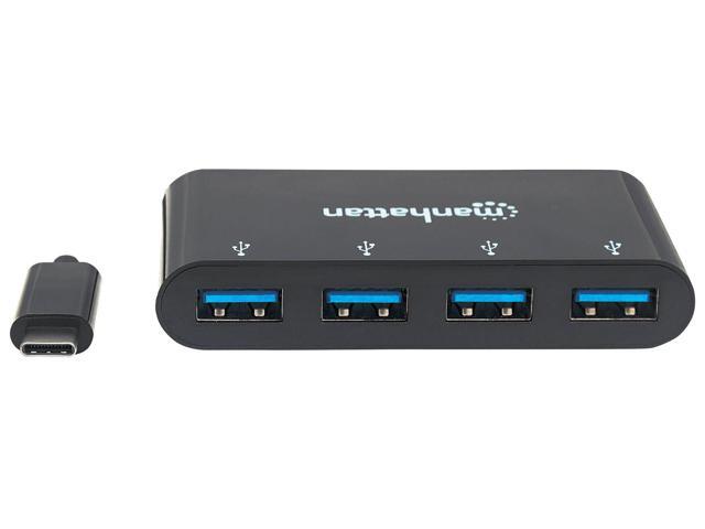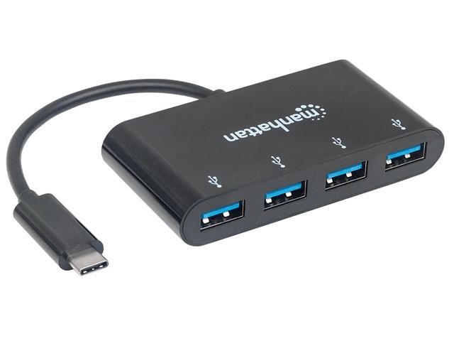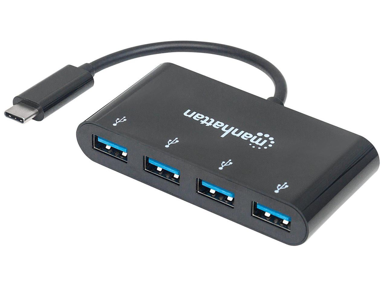 Connects type-C device to four SuperSpeed USB type-A ports for additional peripherals