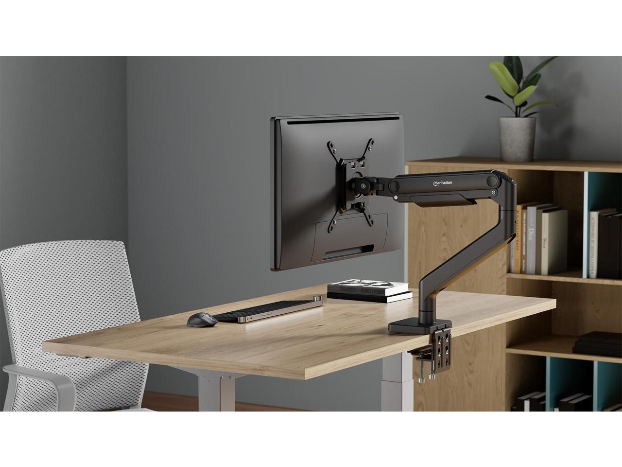 Manhattan Heavy-Duty Aluminum Mechanical Spring Single Monitor Desk Mount Holds One 17" to 49" Monitor up to 20 kg (44 lbs.), Black