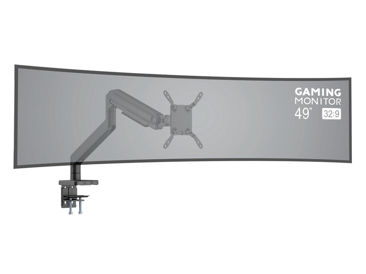 - Articulating double-link swing arm to support one 17" to 49" flat or curved monitor from 2 to 20 kg (4.4 to 44 lbs.)