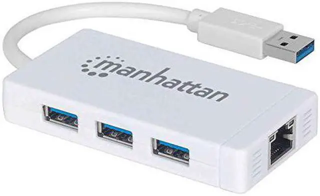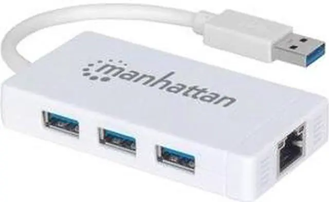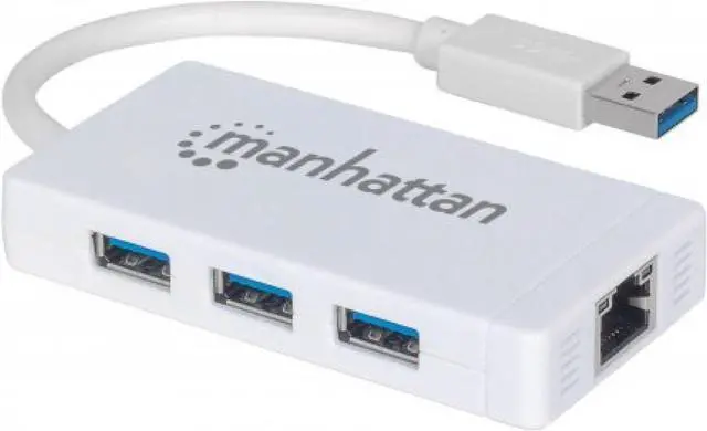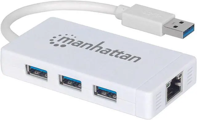 3-Port USB 3.0 Hub with Gigabit Ethernet Adapter Three 5 Gbps SuperSpeed USB 3.0 ports and one 10/100/1000 Mbps ports for UltraBooks and MacBook. Adds a high-speed Gigabit network connection and three USB 3.0 ports for notebooks, 2-in-1s, Ultrabooks, Surface devices, MacBook and Chromebook. Three SuperSpeed USB 3.0 hub ports support speeds of up to 5 Gbps. One Gigabit Ethernet port (RJ45) supports up to 2 Gbps full-duplex transfer speed. Works with Ultrabooks, laptops and PCs running Windows Windows 7 or Windows 8, Windows 8.1 or Windows 10. Compatible with Apple MacBook (driver download available).