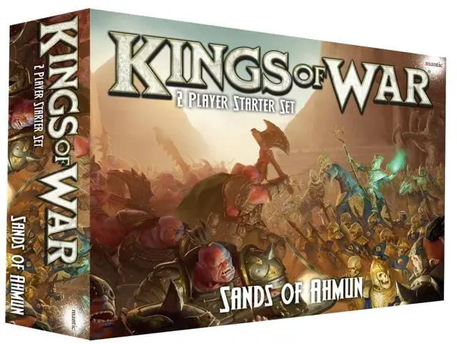 Dive into the world of Pannithor with "Kings of War: Sands of Ahmun - Two Player Starter Set" by Mantic Games. This set is the perfect introduction to the mass fantasy battle game, Kings of War, set in the parched wastes to the west of Ophidia. Relive the epic battles between the sinister Empire of Dust and the tough ogre mercenaries hired to keep them in check.