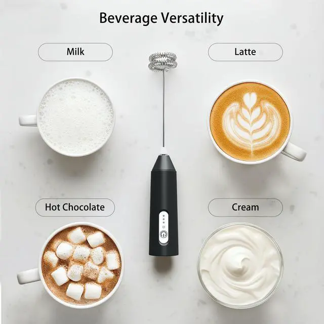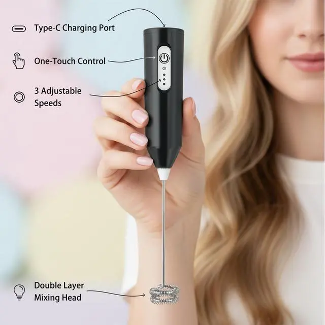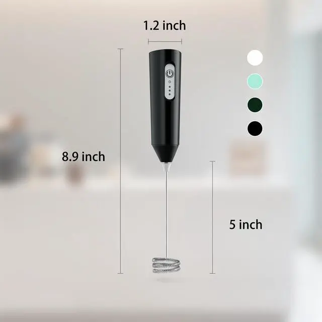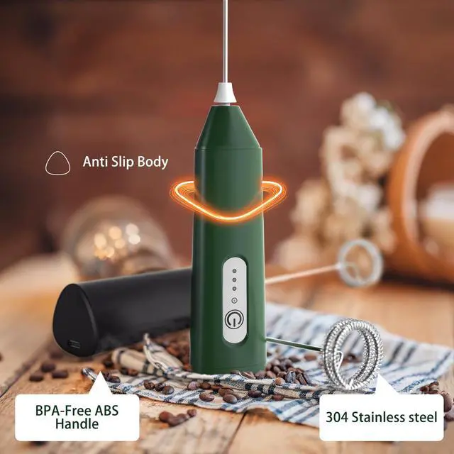 This 3-speed electric milk frother comes with 3 detachable whisks, designed to meet all your mixing and frothing needs effortlessly. With 3 adjustable speeds4500 RPM for fluffy eggs, 6000 RPM for smooth milkshakes and food, and 8000 RPM for creamy milk foamits perfect for making lattes, cappuccinos, baking treats, or daily drinks like hot chocolate. Powered by a built-in 400mAh battery and featuring Type-C fast charging (2 hours for a full charge), it eliminates the hassle of disposable batteries; the LED indicator turns red while charging and shuts off when full, ensuring you never run out of power unexpectedly, whether at home, in the office, or on the go. Crafted with food-grade stainless steel whisks and a BPA-free ABS handle, it guarantees safe, non-toxic contact with food, while its powerful yet low-noise motor (quieter than standard frothers) lets you enjoy peaceful mornings without disturbing family or colleagues. Cleaning is a breezesimply press the button and immerse the whisk head in water to rinse in 3 seconds, no disassembly requiredand it includes a compact stainless steel stand for convenient storage, keeping your countertop organized; detachable heads install or remove easily with a simple alignment and plug-in. For motor longevity, switch speeds only after turning off the device; available in 4 trendy colors (Black/White/Light Green/Dark Green) to match your kitchen decor, its lightweight (8.86 inches × 1.18 inches, whisk length 4.33 inches) and portable, making it a must-have for coffee lovers, bakers, and busy parents looking to simplify frothing, mixing, and daily kitchen tasks.
