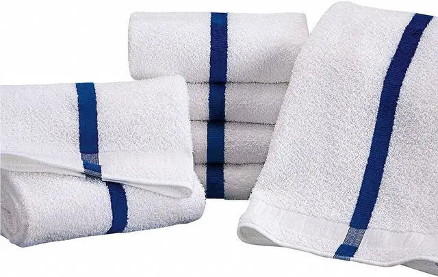Pool Towel, Width 20 In., Length 40 In., Weight 5-1/2 lb., Cam Border, Polyester/Cotton Base, Cotton Loops Material, Hemmed Edges, Color Blue Center Stripe. This item has been restricted from sale in the following state (s): []