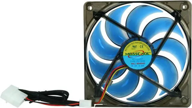Model BLD-12025V1 Fan Dimensions 120 x 120 x 25mm (l x w x h) LED 4 Blue LEDs Bearing Type Ball Bearing Fan speed 1,500 RPM +/-10% Fan Noise level 23.5 dBA Max. Fan Air Flow 60 CFM Max. Fan Air Pressure 2.01 mmH2O Rated Voltage 12 V Rated Current 0.30 A Rated Power 3.60 W Power Connector 3-pin motherboard; 4-pin power supply Life hours 40,000 hours Application Second case fan or other purpose 4 blue LEDs Ball bearing 40,000 long life hours Maximum RPM up to 60CFM RoHS compliance for protecting the environment 3 pins /4 pins connector