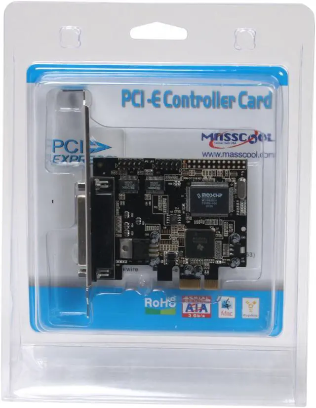 This easy to install and configure PCI Express (x1) card from Masscool adds 2 extra high-speed serial ports and 1 parallel port to any PC. This simple and reliable card is compatible with any serial peripheral and provides the most convenient way of connecting PCs to external modems, serial printers, Palms, mice, point-of-sale devices, digital cameras, etc. The parallel port is compatible with most parallel peripherals and provides the most convenient way of connecting legacy parallel devices to er PCs.