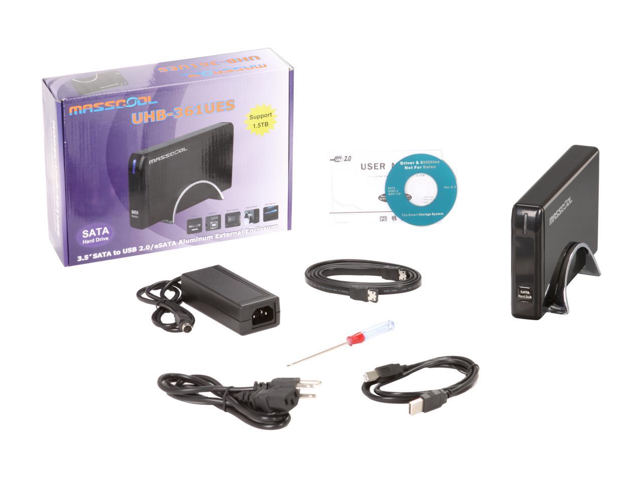 MASSCOOL UHB-361UES Aluminum 3.5" Black SATA II USB 2.0 & eSATA External Enclosure