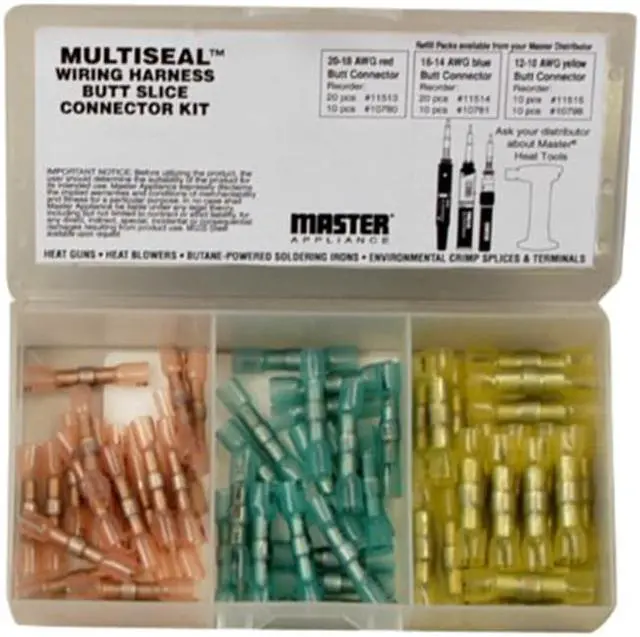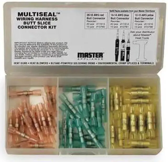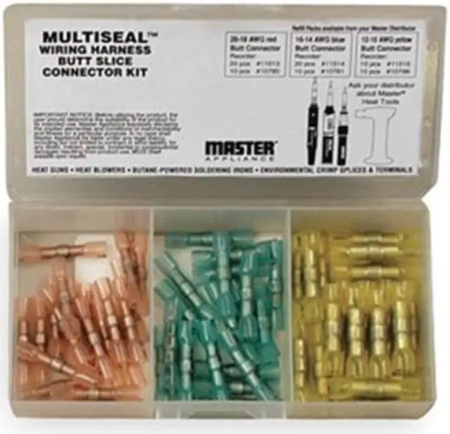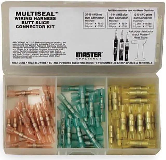 California Proposition 65: This product contains a chemical known to the State of California to cause birth defects or other reproductive harm. Crimp, Solder, and Heat-Seal Butt Splice Mini-Pak, For Conductor Material Aluminum, Copper, Insulation Material Polyolefin, Maximum Operating Temperature 230 Degrees F, Minimum Wire Size 20 AWG, Maximum Wire Size 10 AWG, Number of Pieces 50, Termination Style Crimp, Tools Included None, Manufacture Model Numbers Included 11546, 11547, 11548, RoHS Compliant Yes, Standards CSA, UL, Compatible with Series Multiseal (TM), Connector Assortment Type Crimp Terminals. This item has been restricted from sale in the following state (s): []