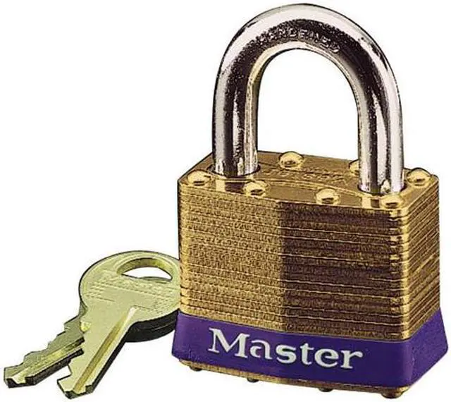 1-3/4", Laminated Brass Padlock, Brass Pin Tumbler, 15/16" Shackle, 5/16" Shackle Diameter, Uses Master Lock Key Blank K1BOX Or Ilco Blank M1 TV #320-952, Carded.