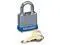 High-security padlock offers precision cylinder protection. 4-pin cylinder helps prevent picking. Hardened steel shackle provides superior-cut resistance. Dual locking levers provide extra pry-resistance. 1-9/16" (40mm) wide, steel body offers superior strength. Design also features nickel-plated shackle and tough, laminated cadmium, rustproof steel case. Padlock includes two brass keys.