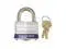 Master Lock Universal Pin Keyed Padlock - For use with Master Lock's universal pin keying system. Laminated case 4-pin tumbler security. Dual steel levers lock both sides of case-hardened shackle. 4-pin tumbler cylinders helps prevent picking. The system utilizes a mounted fixture or punch tool to shear the serrated pins to fit a customers existing padlock key. Padlocks do not include keys. The universal pin system will only work with Master Lock's original key blank or the M1 blank. Universal punch tool is required to match the universal padlock to consumer's key. - Type: Universal Pin, Body Width: 2", Body Material: Laminated Steel, Shackle Dimensions: 1" x 15/16" x 3/8", Shackle Diameter: 3/8", Shackle Horizontal Clearance: 15/16", Shackle Vertical Clearance: 1", Locking Mechanism: 4-Pin Tumbler, Pkg Qty: 1, Package Type: Box