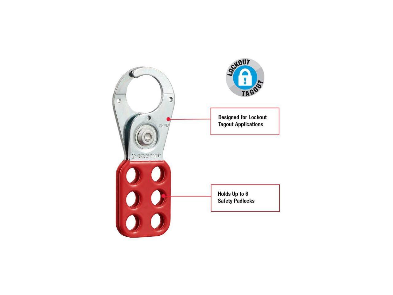 Safety Lockout Hasps, 1 in Jaw Dia., Red