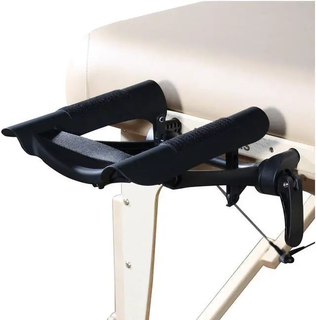 The ergonomic dream lx face cradle is a luxurious version of the base ergo captain standard. In addition to the added comfort from the curved cross-bar and arc'd wings to reduce forehead and cheekbone pressure, the ergo captain deluxe comes with an adjustable and lockable ribbon to adjust the stiffness of the cushion to match the client's needs. It also comes with two aroma-containers designed for holding essential oils for a complete sensory massage.