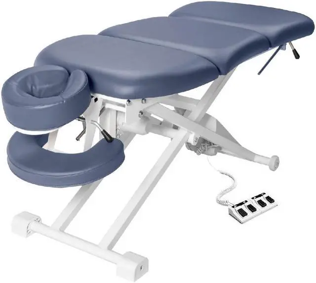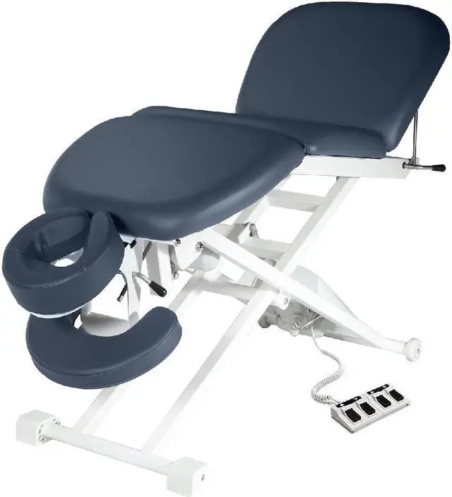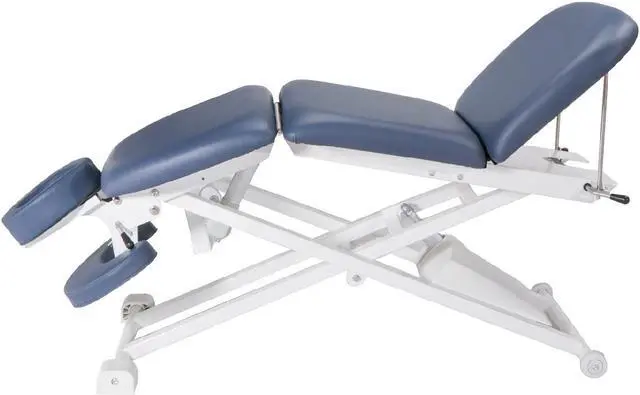 "This power-driven electric bodywork table incorporates features such as a power-driven raising mid-section, raising leg section, a sturdy head-cradle and armrest and an ergonomically designed contoured top, greatly increasing your options when positioning a client and therefore the treatments able to be carried out. The efficient design ensures reliability and the robust. The adjustable head and armrest affords luxurious comfort and allows a patient's shoulders to fully relax. Electric massage tables ensure you're always working at the correct height (saving your back) and allow height changes throughout a treatment without disruption to your client. With a wider height adjustment range than portable tables they make access much easier for elderly and disabled clients."