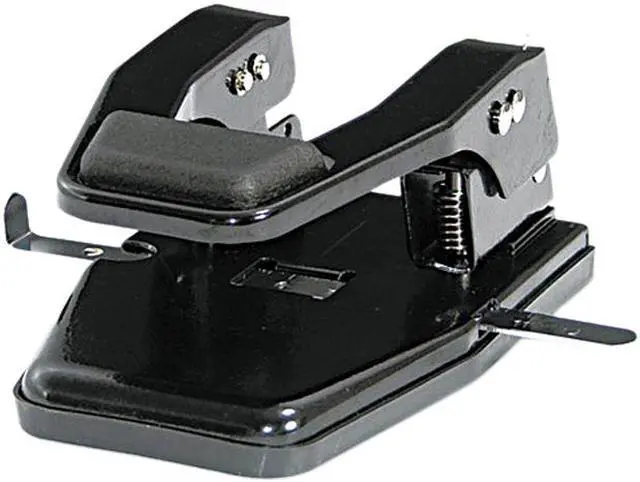 Master Heavy-Duty 2-Hole Padded Punch - 2 Punch Head(s) - 40 Sheet Capacity - 9/32" Punch Size - Round Shape - 13.8" x 12.5" x 9.5" - Black Two-hole punch offers a padded, oversized handle to cushion your hand when punching. Hole punch drills through up to 40 sheets of 20 lb. bond paper. Oversized 9/32" punch heads allow easier page-turning. Nonskid feet keep the hole punch in place while punching. Lock down handle for storage and safety. Two-hole punch also features 2-3/4" center; adjustable, ruled paper guide; heavy-gauge steel construction and a no-mar chip pan.