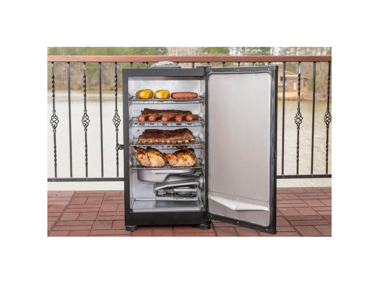 Digital electric smoker with 730 inches of cooking space and 4 chrome-coated racks