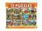 This MasterPieces 12-Pack Alan Giana Puzzle Bundle features beautiful folk art scenes, painted by talented artist Alan Giana. This puzzle pack includes a fold-out giant panoramic poster of all 12 images, each puzzle has a custom pattern on the back to make it easy to keep puzzles organized, and the entire pack includes 4 - 100pc puzzles, 4 - 300pc puzzles, and 4 - 500pc puzzles. Our 12-Pack puzzle bundle is sure to provide hours of entertainment for you and your family, and is the perfect gift for any puzzle lover! To reduce their impact on our environment, the chipboard used in these puzzles is made of recycled material.