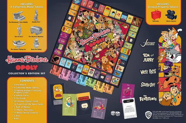 Board, 6 Collectible Metal Tokens, 22 Hanna-Barbera Property Cards, 4 Vehicle