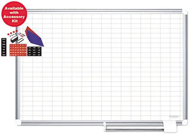 Organization is vital for the success of every business or enterprise. Planning boards are excellent tools that allow you to keep planning and tracking on time. Keeping important tasks on display, organizing work-groups or just planning ahead is practical and easy. Pale gray grid lines help ensure easy alignment of text and magnetic accessories. Magnetic lacquered steel dry erase surface is suitable for frequent use and allows you to post notes and messages as well as write. Sturdy aluminum frame features a sliding pen tray and an easy four-corner mounting system. Includes mounting kit. Global Product Type - Boards-Magnetic Wet/Dry Erase Board Type - Magnetic Dry Erase Calendar Board Width - 36 Board Height - 24 Surface Material - Gold Ultra Enameled Steel Surface Color - White Frame Material - Aluminum Frame Color - Silver Mounting Details - Easy-4-Corner Mounting Kit Included Grid Columns - 17 Grid Rows - 23 Compliance Standards - Trade Act Compliant Compliance Standards - ISO:9001-2008. Pre-Consumer Recycled Content Percent - 0% Post-Consumer Recycled Content Percent - 0% Total Recycled Content Percent - 0% Special Features - 1 x 2 Grid