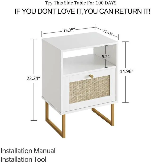 At first glance, the nightstand looks great. The combination of rattan-style panels and pine legs, graceful lines and textures that full of modern farmhouse atmosphere. Put it next to the bed, put a beautiful vase or photo frame, the whole bedroom becomes different, the elegant atmosphere permeates the whole room, and the mood is comfortable. The storage function of the super large space makes you no longer have to worry about where to put some messy daily necessities before going to bed.