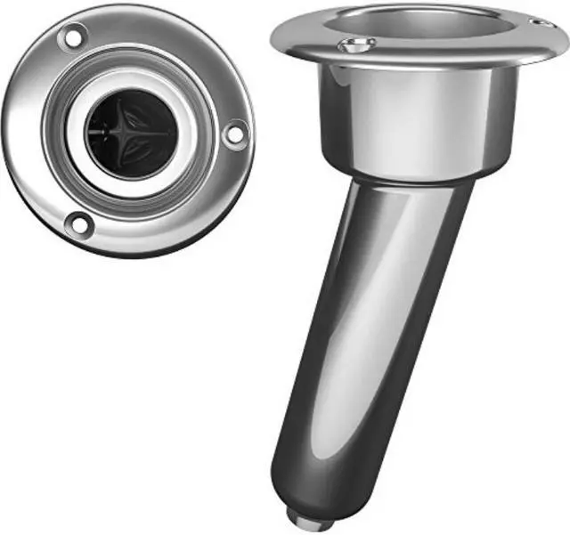 Stainless Steel 15° Rod & Cup Holder - Drain - Round Top