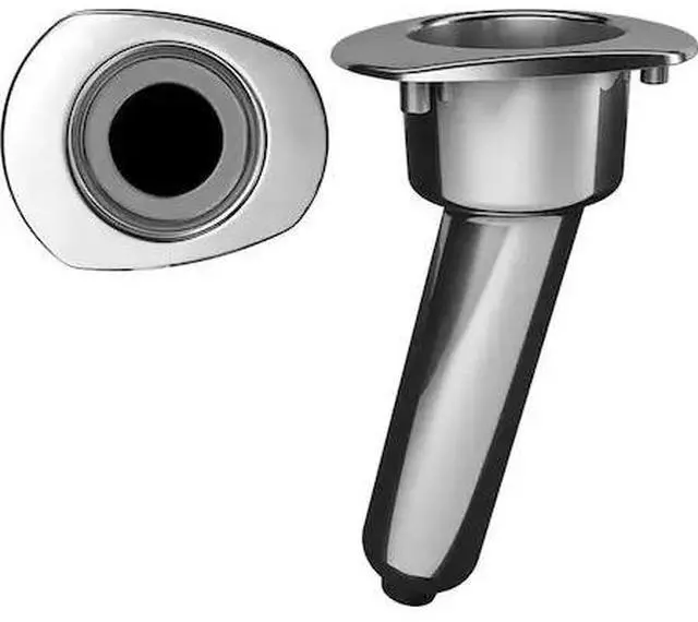 Elite Screwless Stainless Steel 15° Rod & Cup Holder - Drain - Oval Top