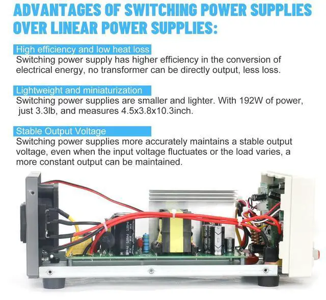 Accurate Readings: The adjustable power supply featuring a 4-digit digital display, offers 10mV 1mA resolution for ultra-precise voltage & current testing. Backlit display ensures clear visibility in any light condition.