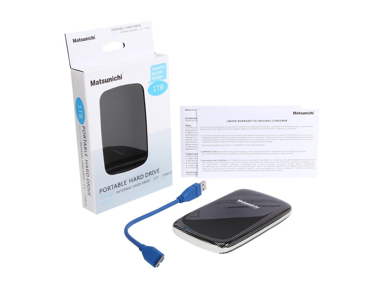 Matsunichi 1TB Portable External Hard Drive USB 3.0 Model DM256-BK-1TB Black