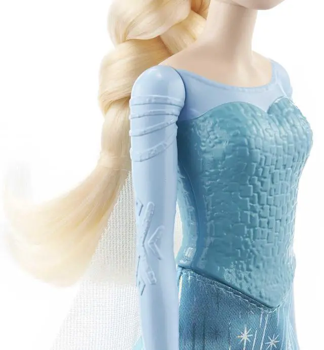 Meet this Elsa doll, inspired by the confident and powerful queen from Disney's Frozen! This posable fashion doll is shown in her signature look, with accessories that include shoes and a soft cape and skirt. In her signature outfit from the movie, this Elsa doll is ready to embrace her true self! Doll cannot stand alone. Colors and decorations may vary.