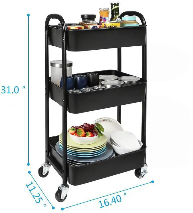 As a kitchen storage trolley, dining trolley, service trolley, rolling shelf organizer and so on. Suitable for both indoor and outdoor use.