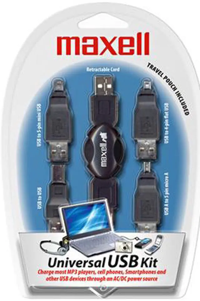 | Features | Charges most mp3 players, cell phones, PDAs and other USB devices Includes 4 different USB tips to fit all your CE devices Retractable cable allows for easy cord management Travel pouch included |