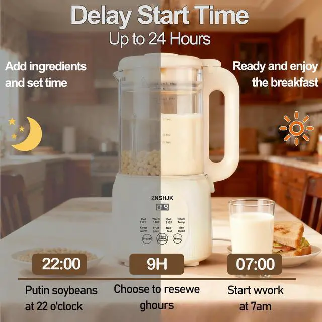No soaking required! Thanks to the 16 sharp stainless steel blades and 22,000 RPM motor, the machine can blend dry soybeans directly into smooth, creamy soy milk.