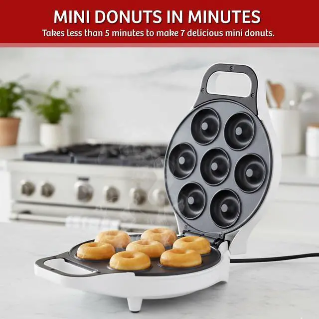 Make up to seven miniature donuts at a time, perfect for breakfast or a late night snack, with the mini donut pan. Our mini appliances offer a cost-effective alternative to expensive bakeries, coffee shops, and breakfast places, making them perfect fun gifts for college students, new homeowners, parents, and more. Easily make enough mini donuts for a crowd with this donut maker machine.