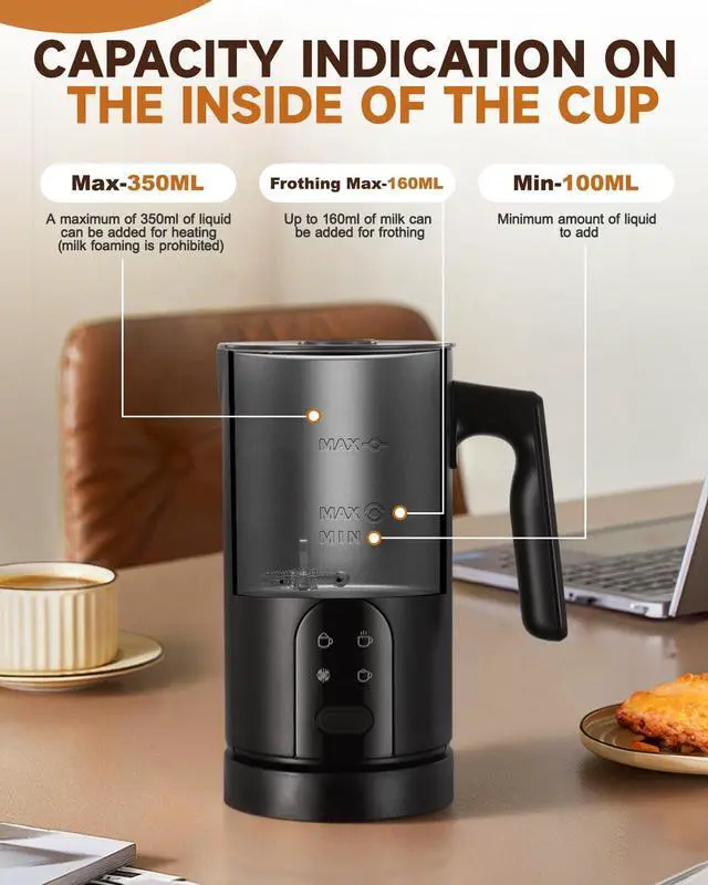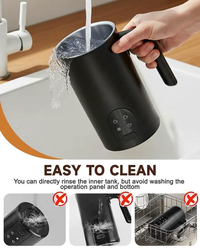 Universal Compatibility for All Milks- The milk foamer frother works seamlessly with whole milk, skim milk, almond milk, oat milk, and soy milkno more failed foam with plant-based milks. The non-stick inner lining of milk frother and steamer prevents milk burning and ensures uniform frothing, keeping every sip smooth.