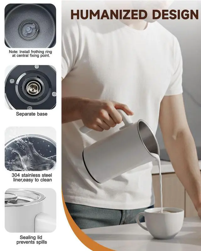 Universal Compatibility for All Milks- The milk foamer frother works seamlessly with whole milk, skim milk, almond milk, oat milk, and soy milkno more failed foam with plant-based milks. The non-stick inner lining of milk frother and steamer prevents milk burning and ensures uniform frothing, keeping every sip smooth.