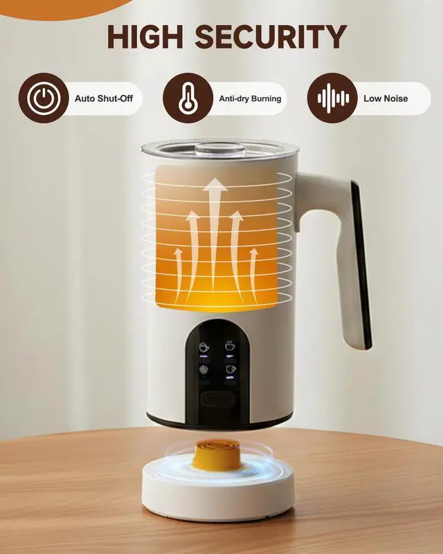 Intelligent Safety & Energy-Saving Design- Built-in auto shut-off function activates when milk boils or foam is ready, the milk steamer and frother for latte avoiding dry boiling risks. With 8-layer safety protection (anti-leakage, overheat guard), its certified for household use.