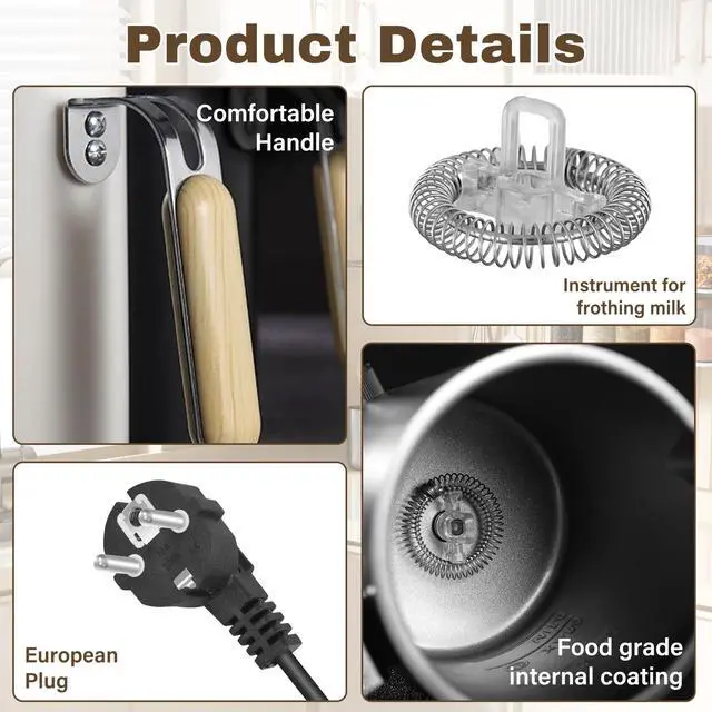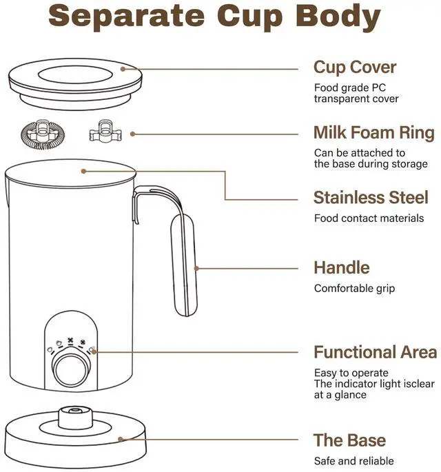 **Effortless Cleaning System** - This Milk Frother features a fully detachable design with a dishwasher-safe 900ml milk container (300ml frothing max / 500ml heating capacity), eliminating hidden residue and making cleanup a breeze. Please note that the Spring Ring and Whisk are NOT dishwasher-safe !