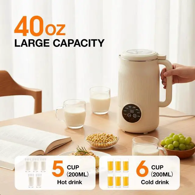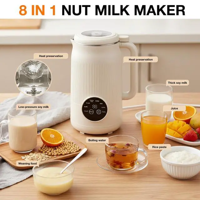 8-in-1 Multi-Purpose Nut Milk Maker Machine: Easily create smooth, homemade and fresh plant-based milks- including almond, oat, coconut, soy, and morewithout additives or preservatives! Satisfying your cravings for fresh, healthy drinks and skip the expensive store-bought alternatives for good.