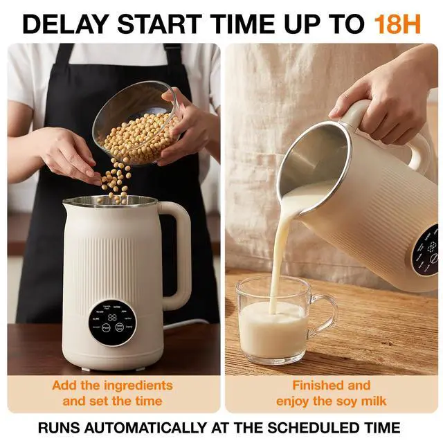 Fully Automatic Operation for Ultimate Convenience: Intelligent preset programs handle grinding, blending, and precise temperature control automaticallyno manual monitoring required. The handy delayed start function lets you wake up to freshly made plant milk, while the 6-hour heat preservation keeps your drinks warm and ready to enjoy anytime, simplifying your busy mornings.