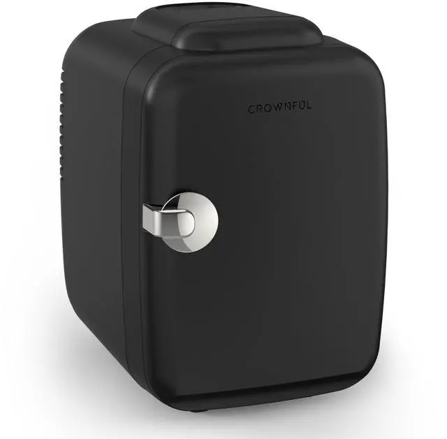 This ultra-compact fridge (4-liter capacity) holds up to six 12-ounce soda cans. For larger needs, we recommend a bigger model.