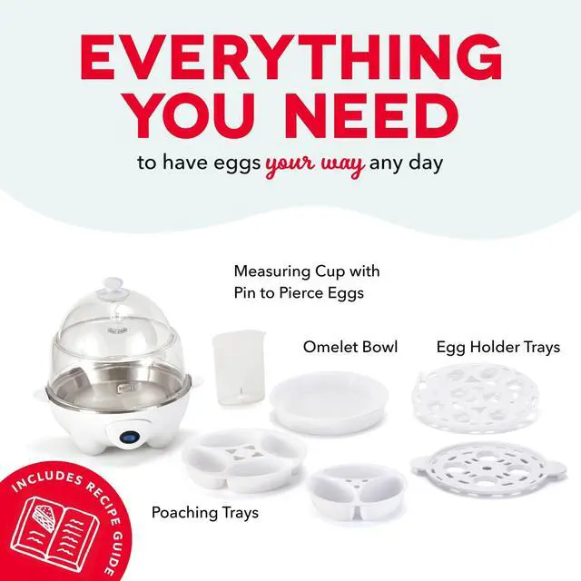 • Eggs in a Dash: In less time than it takes to boil water, the Dash Deluxe Egg Cooker can boil 12 eggs at a time, poach 7 eggs, or cook 1 omelet; you can also steam vegetables, dumplings, and more