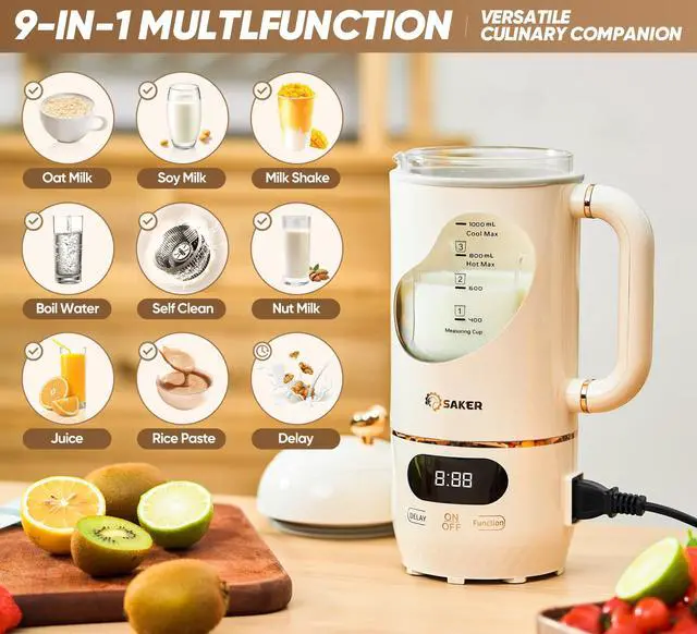 Fully automatic nut milk maker with 9 functions eliminates the soaking process and is suitable for making a wide range of plant-based milks.