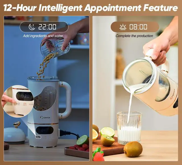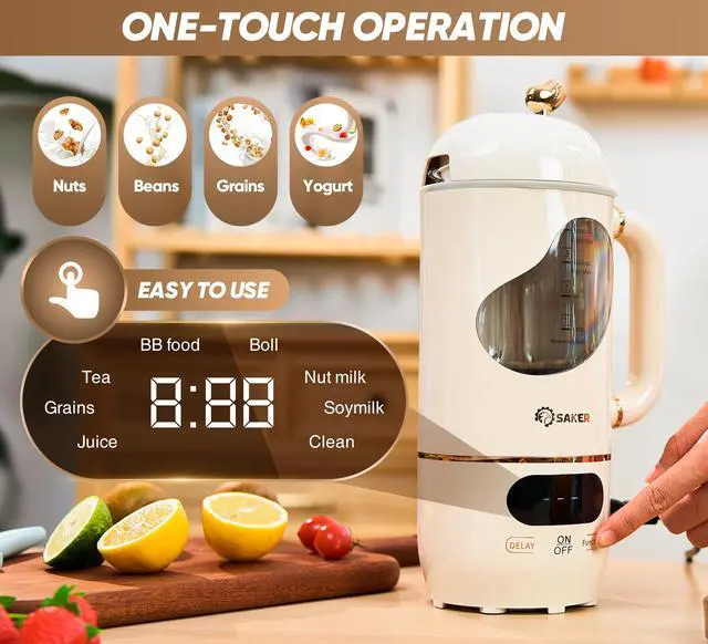 Saker nut milk maker features a powerful motor and 4 upgraded durable stainless steel blades that quickly blends and strains your nuts to create a smooth and creamy milk without any grit or pulp. The machine is no filtering required, leaving you with a perfectly smooth and silky milk every time.