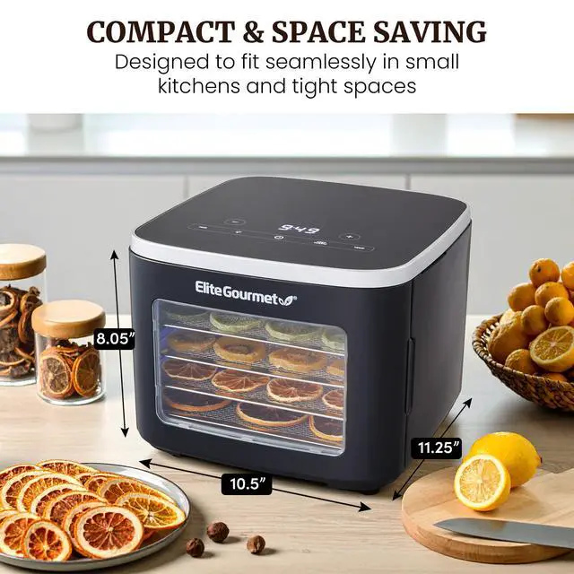 Precision Drying with Digital Controls: Customize your dehydration process with a wide digital temperature range from 95°F to 194°F and a timer that runs up to 48 hours. Whether you're drying herbs, jerky, or fruit, the intuitive controls make it easy to set the perfect temperature and time for every ingredient.