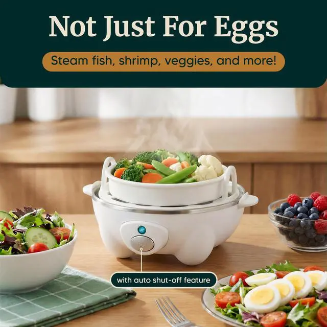 Cook up to 7 eggs in soft, medium, or hard-boiled firmness, while saving time and water.