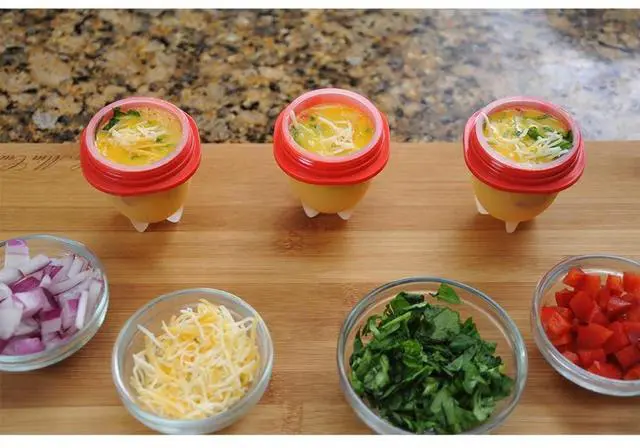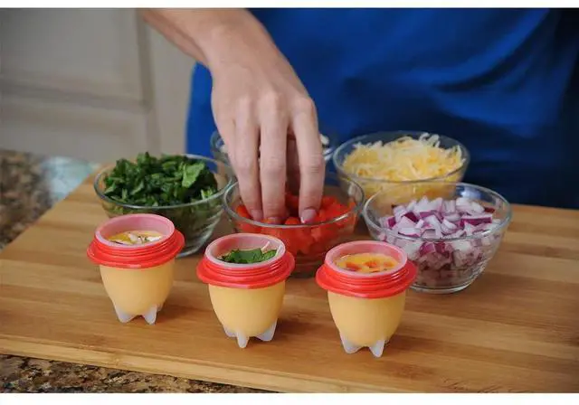 Includes 4 individual BPA Free, non-stick silicone egg cooking cups, recipe ideas and quick start guide