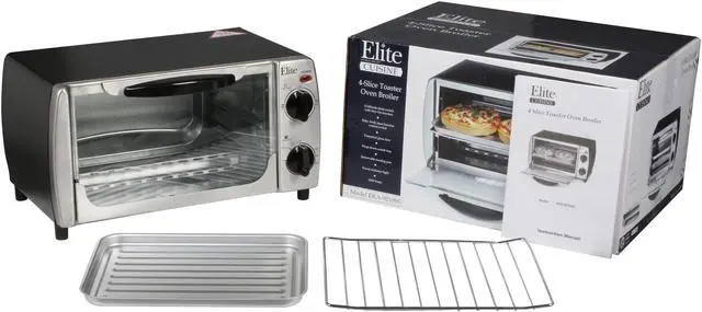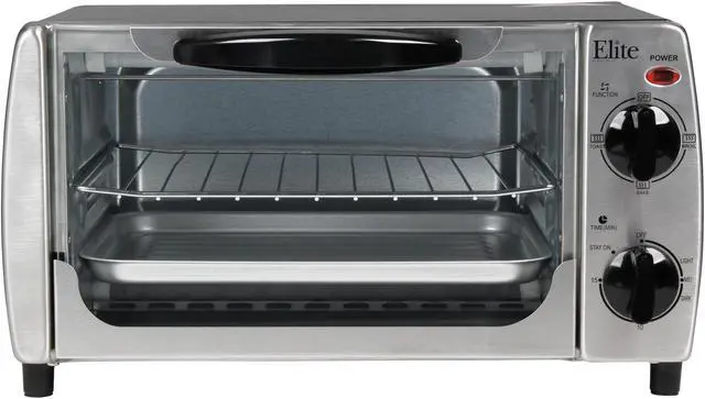 | Features | 15 Minute timer switch Adjustable function control for broil, toast and bake Tempered glass door Drop-down crumb tray Removable Toasting Pan Power indicator light 1000 Watts |