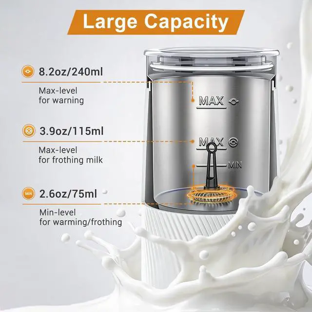- Max.Capacity: 240ml(milk heating);115ml(milk frothing)